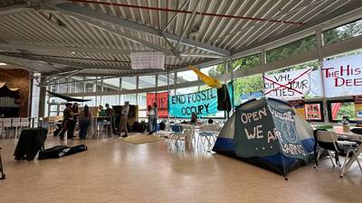 De klimaatactivisten van ‘End Fossil: Occupy’, die donderdag zijn neergestreken in de aula van Hogeschool Van Hall Larenstein in Velp zitten daar nog steeds. Ze hebben een rustige nacht achter de rug. Ze mochten van de schoolleiding blijven slapen op voorwaarde dat de veiligheid geen moment in het geding zou komen.