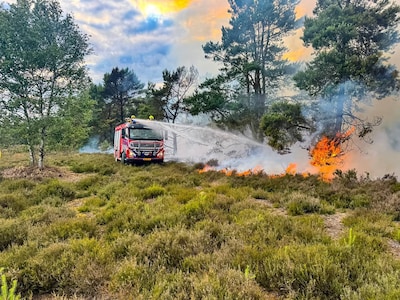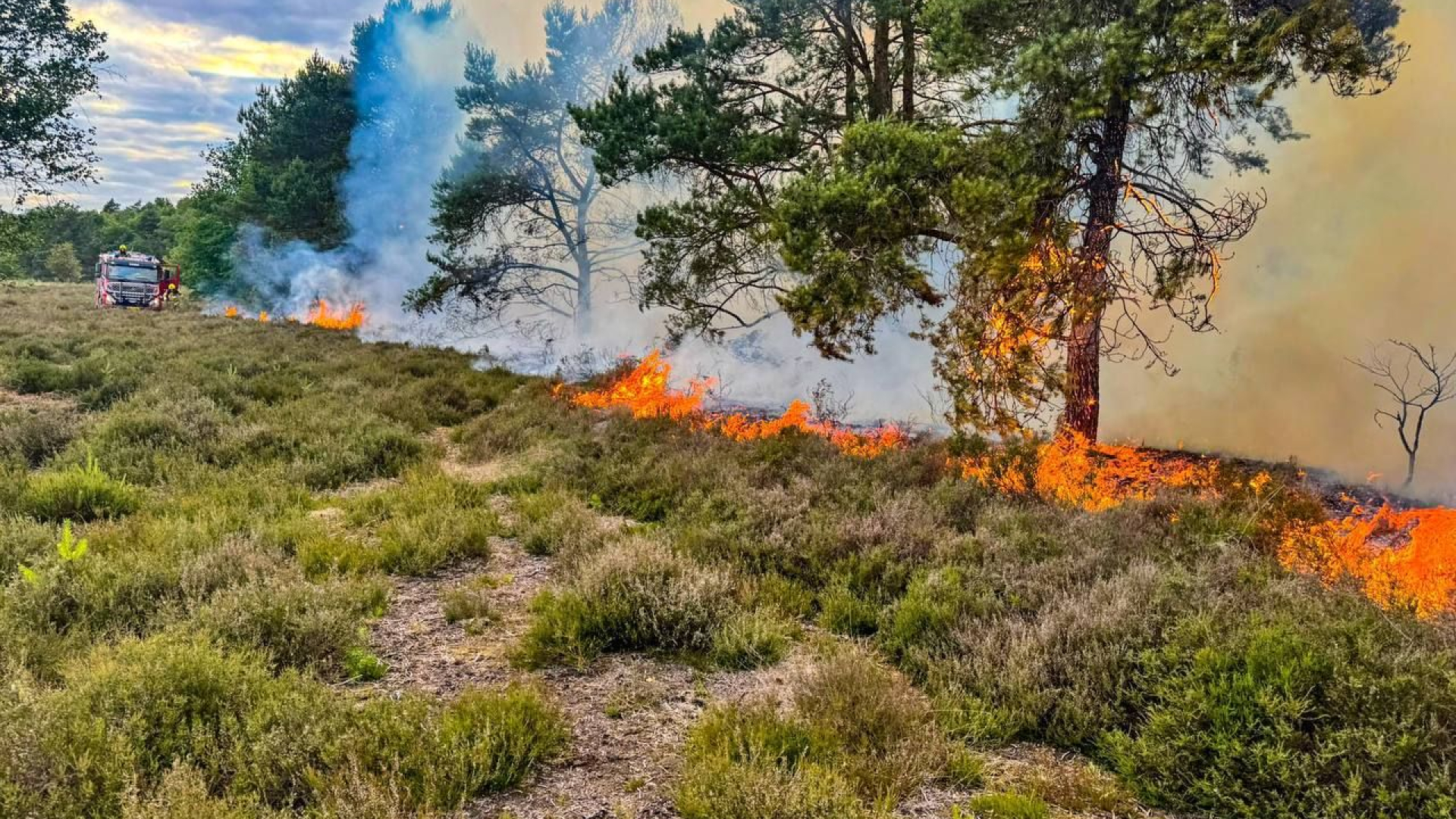 maandag 23 juni 2025, 21:22 uurEen flinke natuurbrand maandagavond langs de Elspeterbosweg in Vierhouten. Een stuk heide en een paar bomen stonden in brand. De brandweer is met veel voertuigen uitgerukt om de brand onder controle te krijgen.