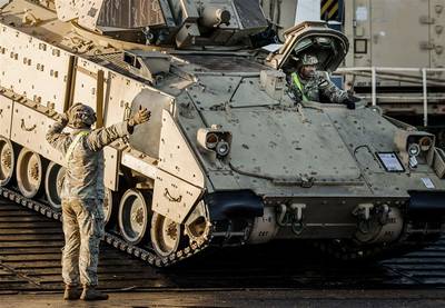 VLISSINGEN - In de haven van Vlissingen is het Amerikaanse leger begonnen met het uitladen van 1275 tanks, artilleriegeschut en ander militair materieel. De gevechtsvoertuigen gaan via Brabant per spoor en de weg naar Polen en Litouwen, waar ze gebruikt worden door een Amerikaanse legereenheid uit Texas. Zij lossen collega’s af voor een half jaar.