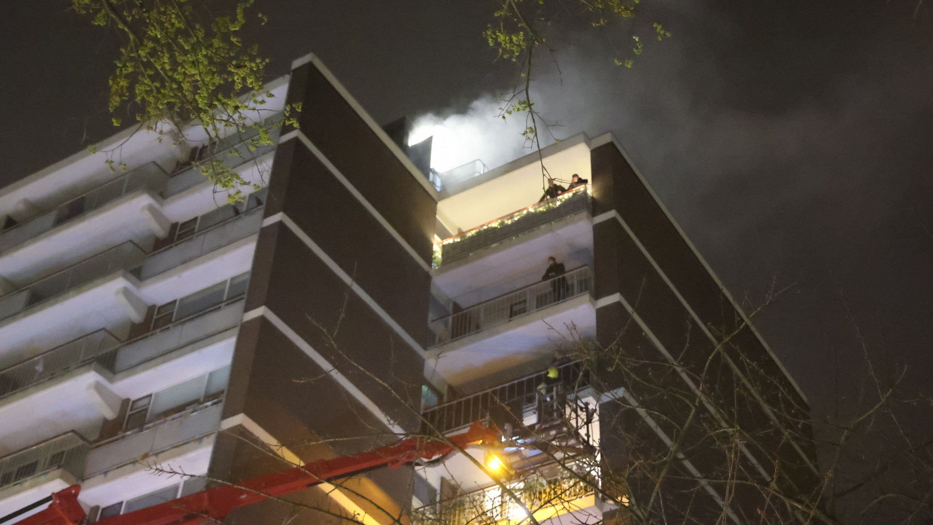 Brand in liftschacht van flatgebouw, brandweer haalt mensen van balkons