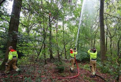 Brandweer redt kater Tijger uit hoge boom met methode 'natte poes'