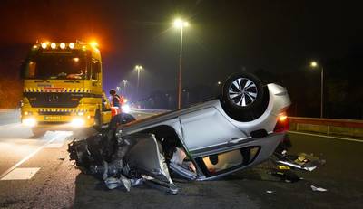 Automobilist knalt achterop vrachtwagen op A2 bij Vught, hij is gewond naar ziekenhuis gebracht