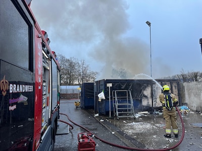 Afval in container vat vlam op milieustraat in Vught, vermoedelijk door smeulende vuurwerkresten