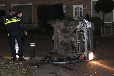 Auto belandt op zijkant in Waalwijk, omstander haalt bestuurder uit auto