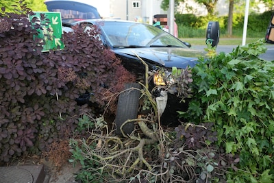 Auto vliegt tuin in na botsing in Waalwijk, bestuurder lichtgewond