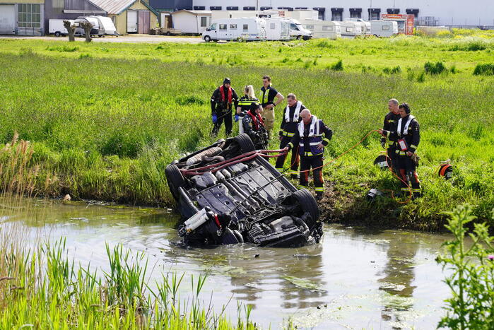 Auto belandt ondersteboven in de sloot
