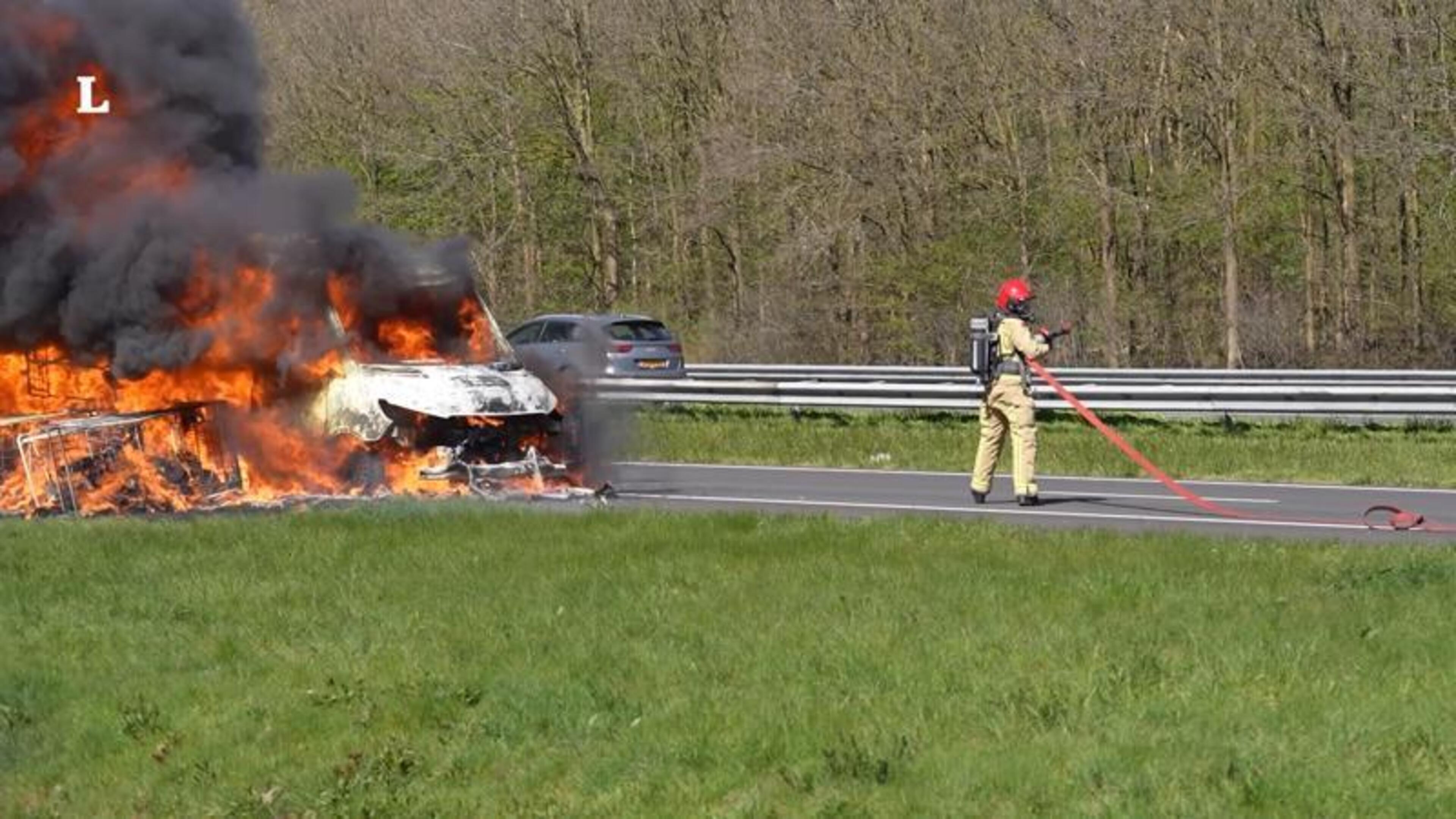 Een bestelbus is woensdagmiddag in brand gevlogen op de A2 vanuit Eindhoven richting Maastricht. De snelweg was daarom in die richting dicht tussen Maarheeze en Weert.