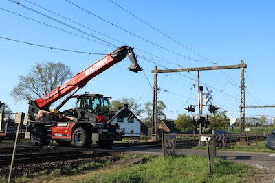 25 april 20:59Hoogwerker botst op bovenleiding, treinverkeer stilgelegd