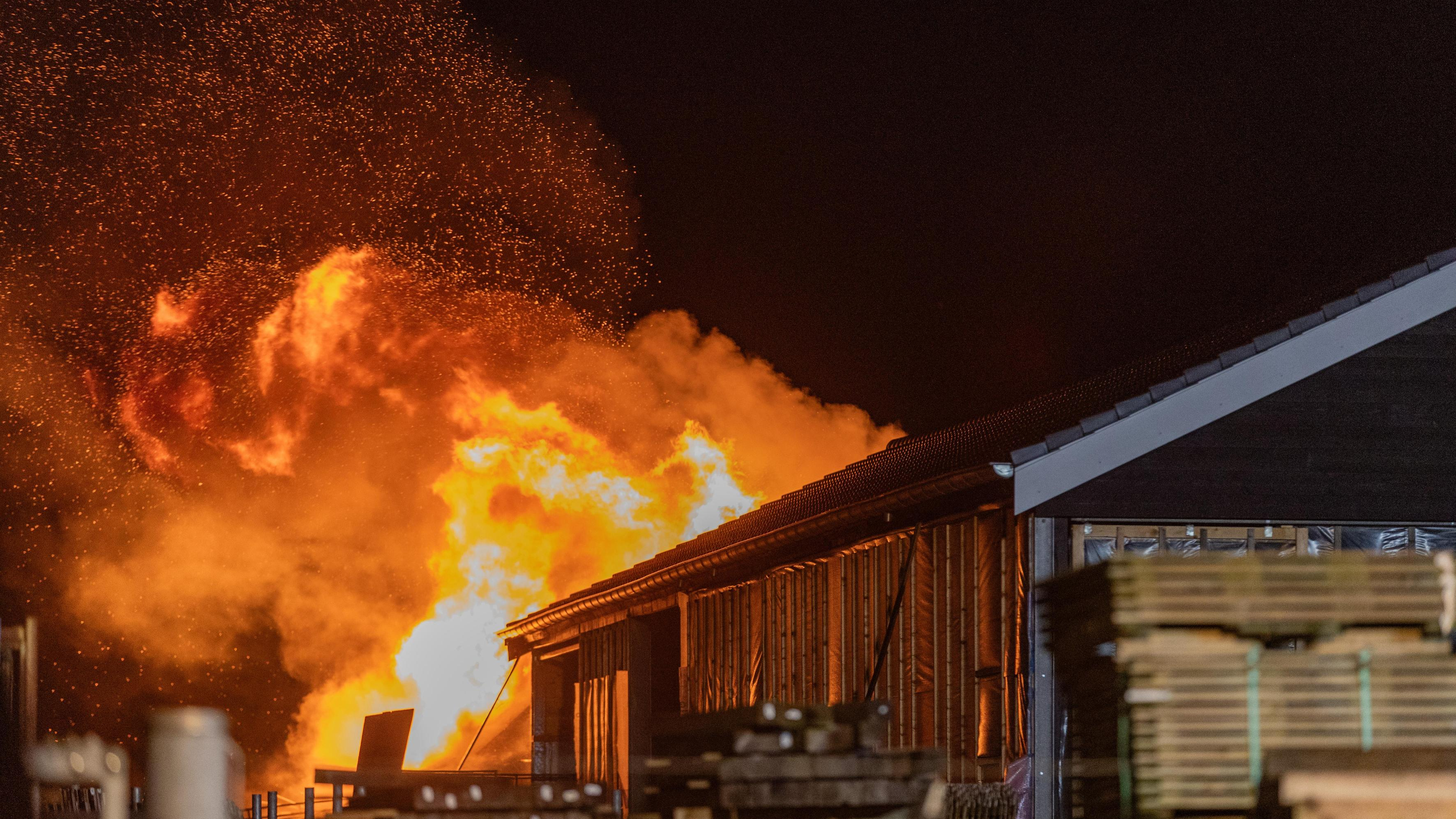 Uitslaande brand in schuur bij houtbedrijf in Willemsoord