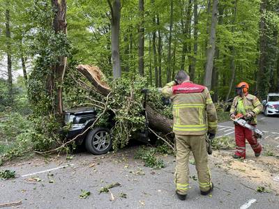 Auto verliest wiel, boom valt op voertuig, vrouw gewond