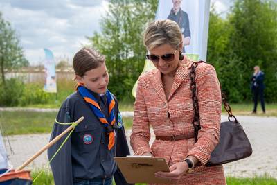 vrijdag 13 mei 2022, 21:02 uurZEEWOLDE - Een zichtbaar ontspannen koningin Máxima bracht vrijdag een werkbezoek aan het Scoutinglandgoed in Zeewolde. Zij liet zich rondleiden door het nieuw gebouwde Avonturenhuis en liet zich door Zeeuwse waterscouts informeren over de activiteiten van de waterscouts. Van Vincent van Belzen van de Doormangroep in Terneuzen (9), kreeg ze een bordspel overhandigd.