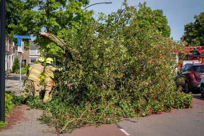 Een flink deel van een boom is maandagmiddag afgebroken en op de Haspelstraat in Zevenaar terecht gekomen. De boomtop belandde op de weg en het fietspad, de weg was daarom afgesloten voor verkeer.