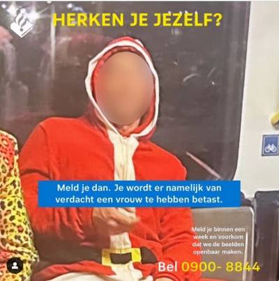 Politie deelt foto van 'kerstman' die zich in trein aan vrouw vergrijpt