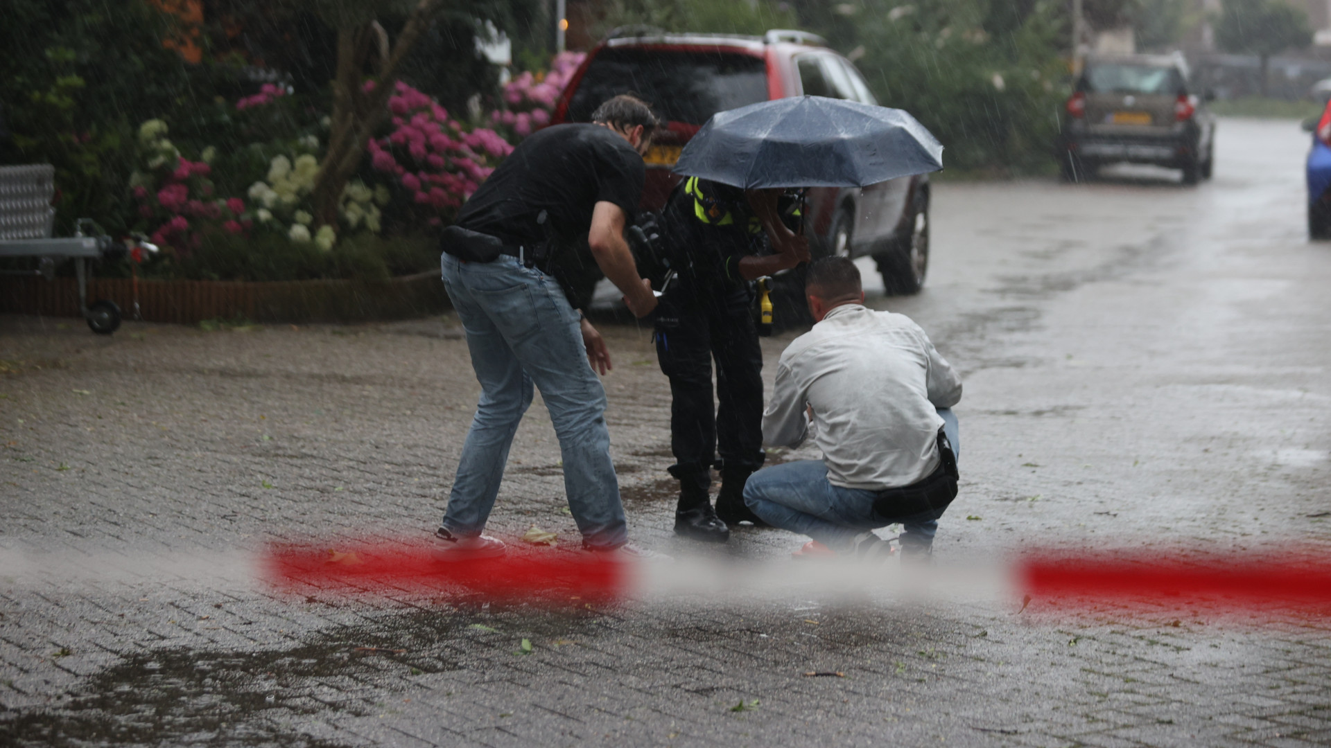 Schoten gelost in woonwijk, onderzoek in stromende regen