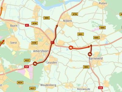Op de A28 bij Nijkerk was donderdagmiddag in de richting van Zwolle een ongeval gebeurd. Vanwege bergingswerkzaamheden en politieonderzoek was de rijbaan enige tijd afgesloten. Het verkeer moest over de vluchtstrook.
