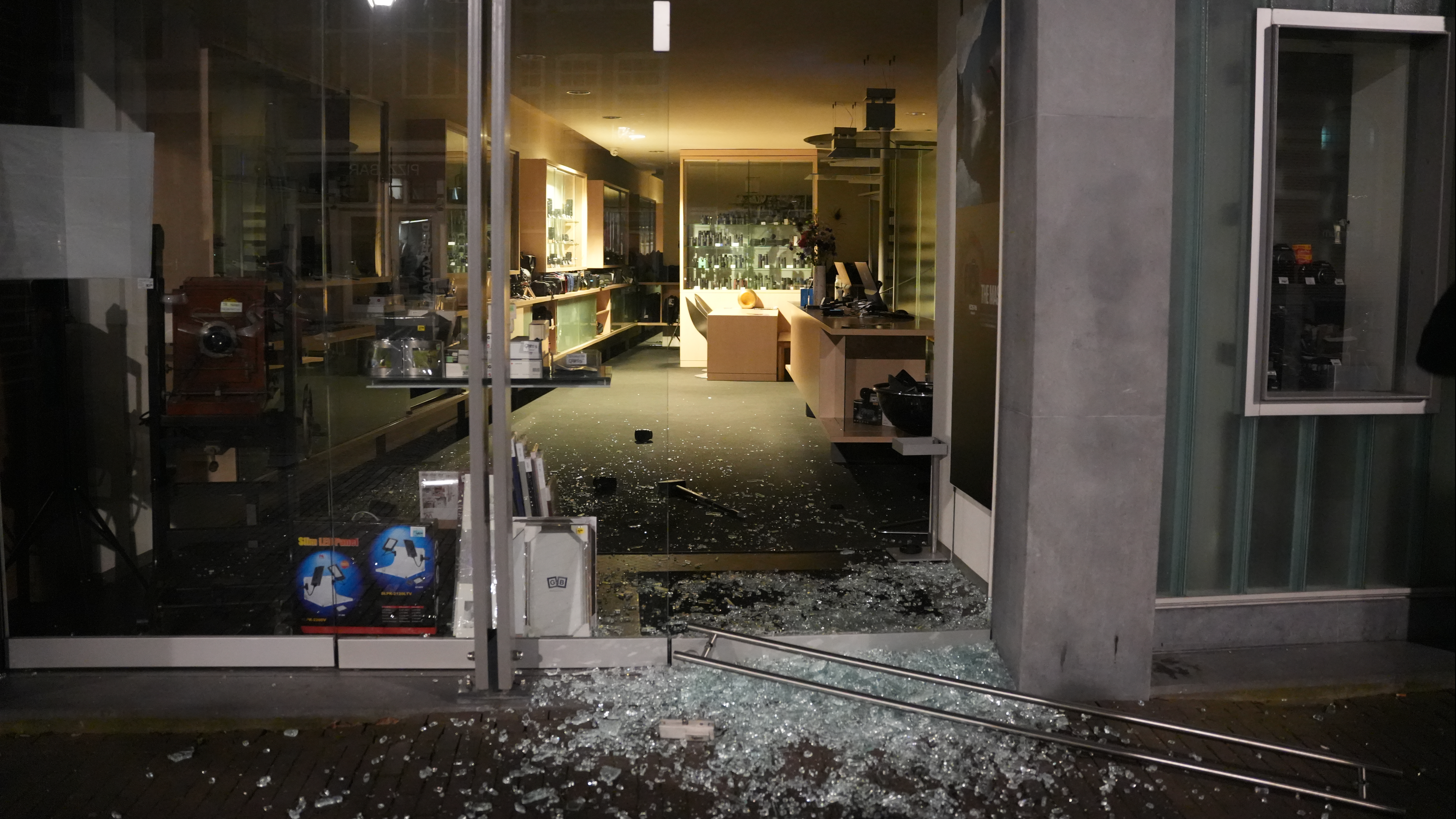 Een fotozaak in het centrum van Zwolle is met grof geweld opengebroken vannacht. Het gaat om Foto Hans Keuzekamp aan de Oude Vismarkt. De ravage is enorm.