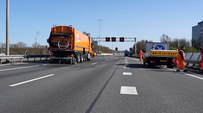 De snelweg A28 bij Zwolle is woensdag in noordelijke richting helemaal afgesloten vanwege slachtafval dat over de volledige breedte van de rijbaan ligt. Met het schoonmaken van de weg is begonnen, al is dat geen makkelijke klus.
