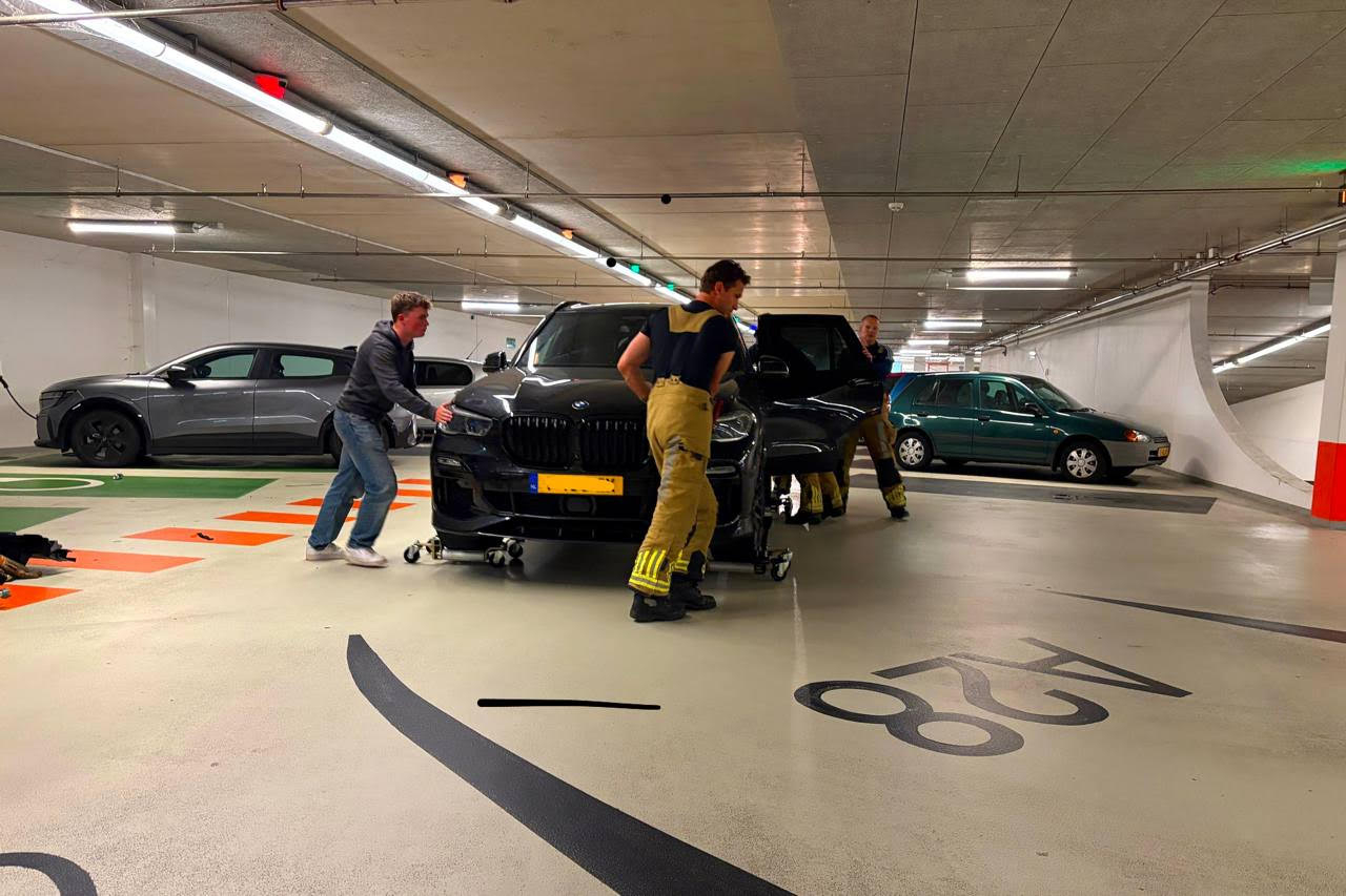 Brandweer haalt stinkende BMW X5 uit parkeergarage