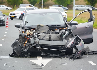 Een auto is dinsdagmiddag zwaar beschadigd geraakt bij een botsing met een vrachtwagen. Dat gebeurde op de IJsselallee in Zwolle, net na de rotonde bij de A28.
