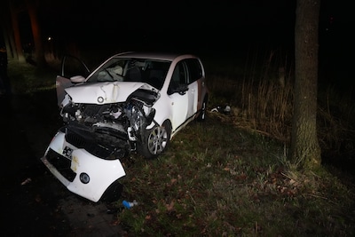 Auto raakt van de weg bij Zwolle, botst tegen boom en komt aan de overkant tot stilstand