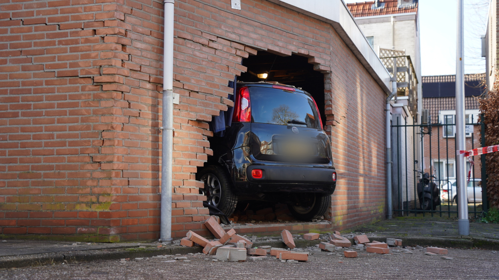Fiat Panda rijdt dwars door schuurmuur in Zwolle