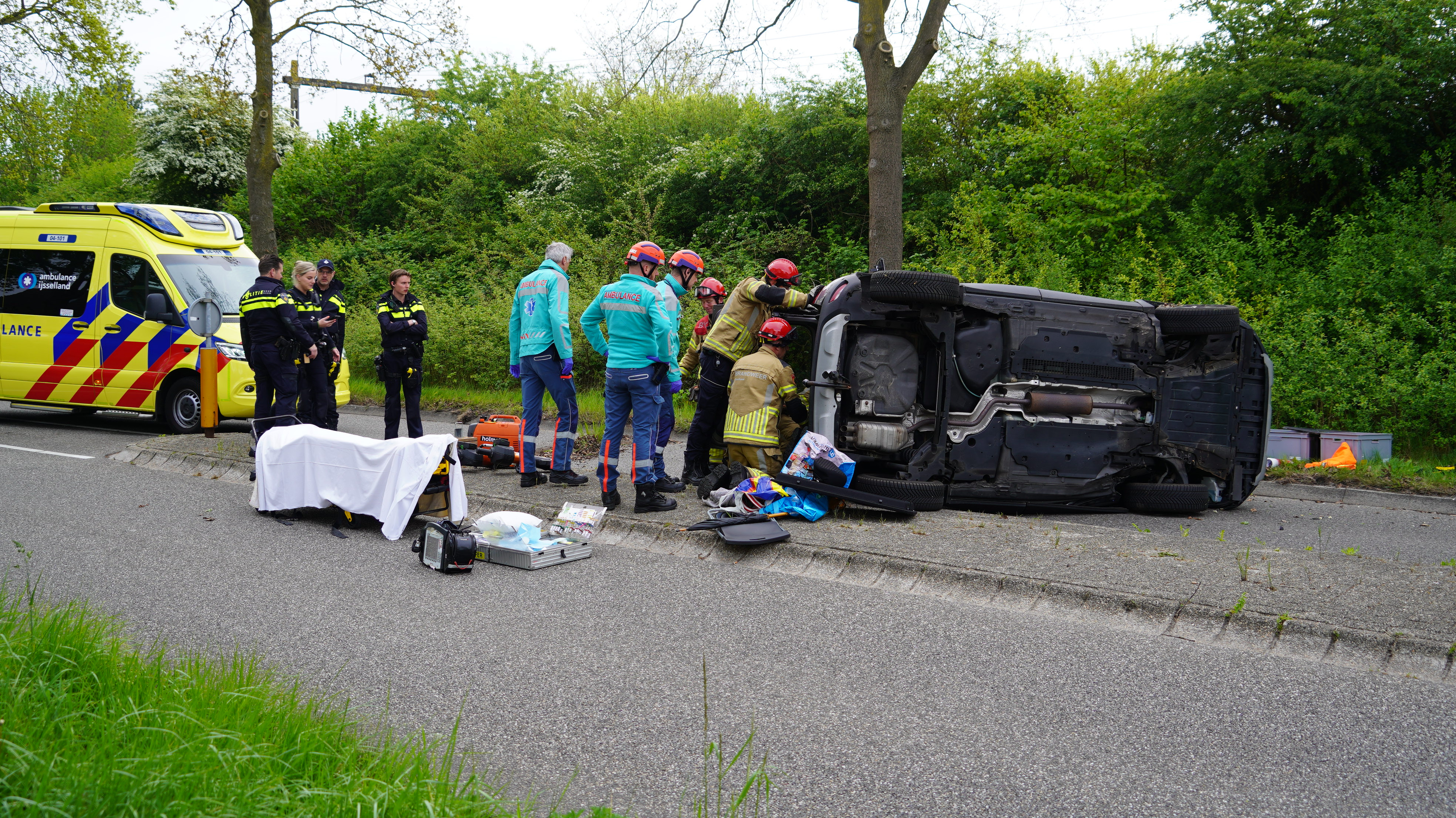Auto belandt op zijn kant in Zwolle: brandweer bevrijdt bestuurder